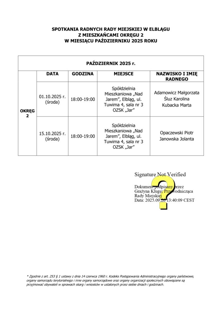 Harmonogram spotkania Radnych Rady Miejskiej w Elblągu w październiku 2025 r. wrz 30, 2025 | Aktualności, Ogłoszenia